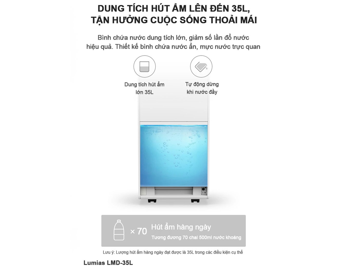 Hút ẩm lên đến 35 lít/ngày.