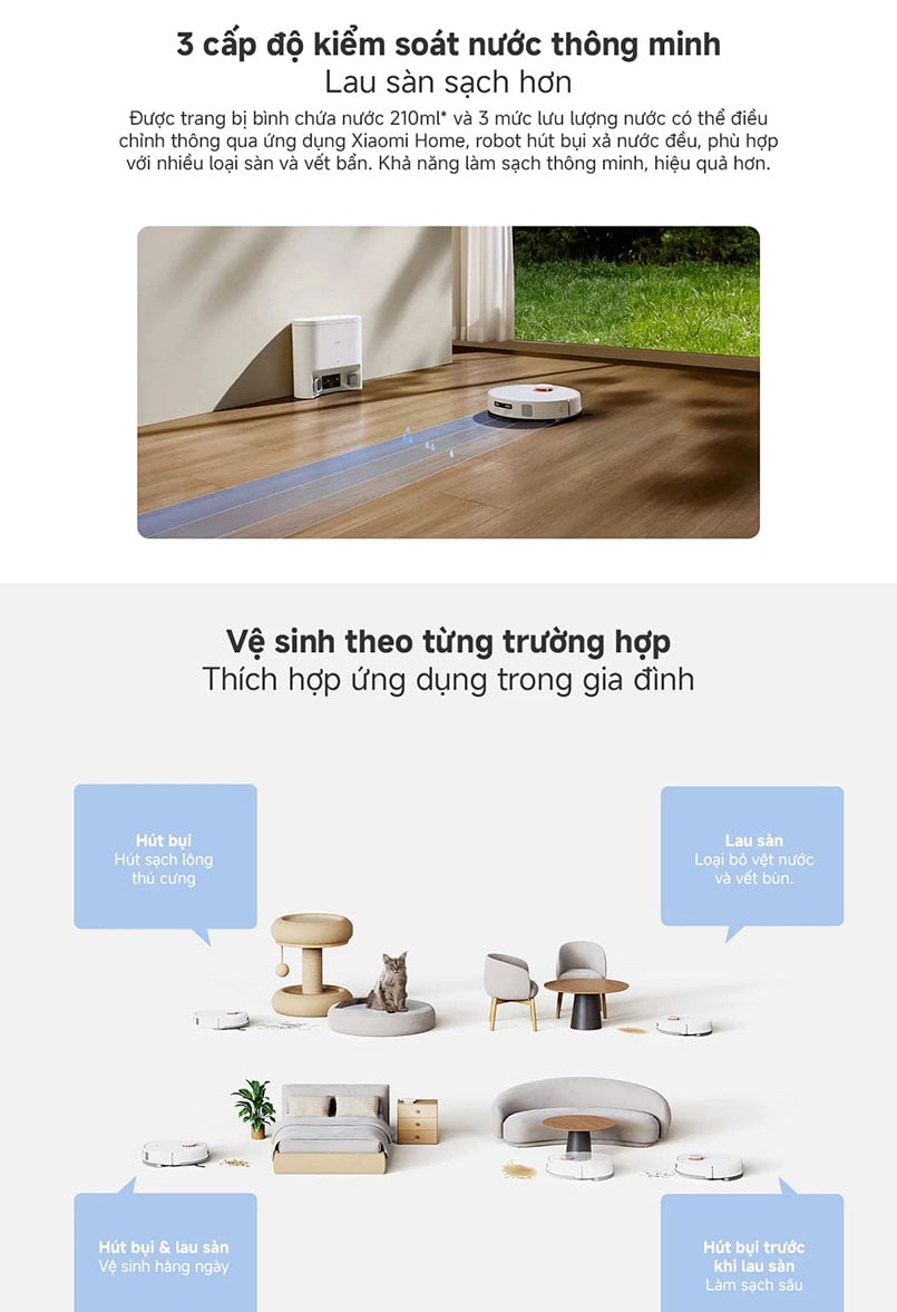 - Điều khiển qua ứng dụng Xiaomi Home, hỗ trợ cài đặt vùng vệ sinh và lịch trình làm sạch.