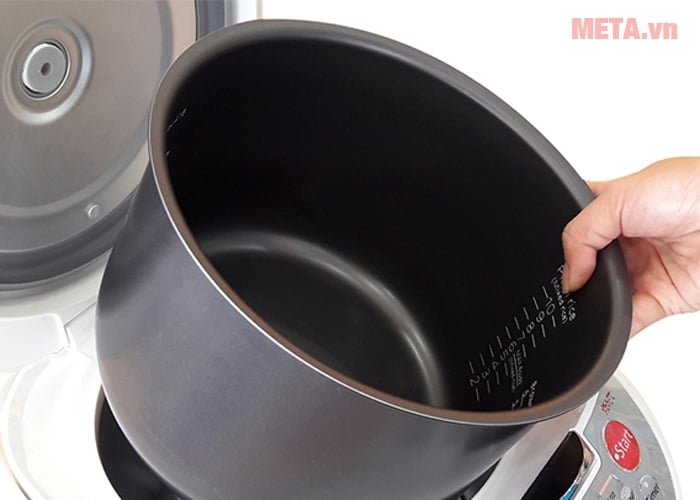 Lòng nồi hợp kim nhôm dày 1.4mm, phủ lớp chống dính.