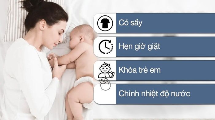 Tính năng khóa trẻ em đảm bảo an toàn, tránh tình trạng trẻ mở cửa hay thay đổi cài đặt khi máy đang chạy.
