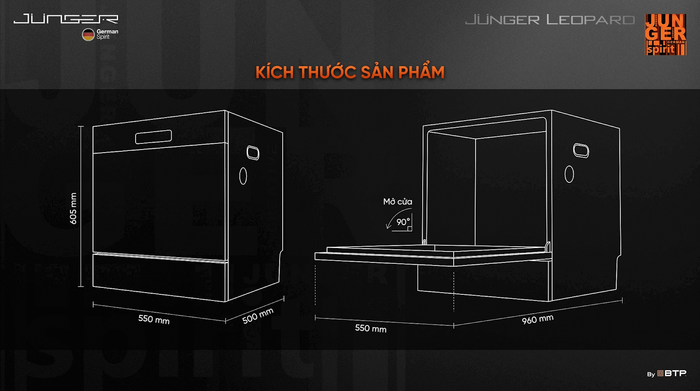 Máy rửa bát Junger Leopard DWJ-103 sở hữu thiết kế sang trọng, sức chứa 12-13 bộ Châu Âu, có thể lắp âm hoặc độc lập