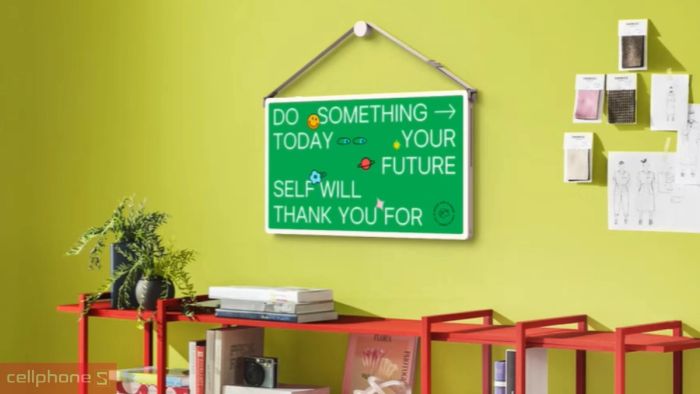 Chế độ Mood Maker cho phép hiển thị các chủ đề nghệ thuật sinh động như đồng hồ, thời tiết hay đĩa nhạc, tạo điểm nhấn cá tính cho không gian. Màn hình cũng hỗ trợ tính năng Let's Draw, nơi người dùng có thể vẽ trực tiếp và hiển thị tác phẩm qua chế độ Always on Display.