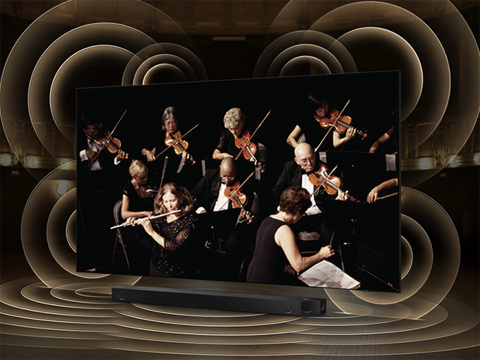 Nhờ công nghệ Q-Symphony âm thanh được đồng bộ một cách hoàn hảo giữa hai loa tầm cao trên tivi Samsung với hệ thống loa trước, loa cạnh bên và loa đánh trần trên soundbar giúp kiến tạo nên một không gian giải trí đỉnh cao, hoàn hảo bao trùm không gian âm nhạc sống động.