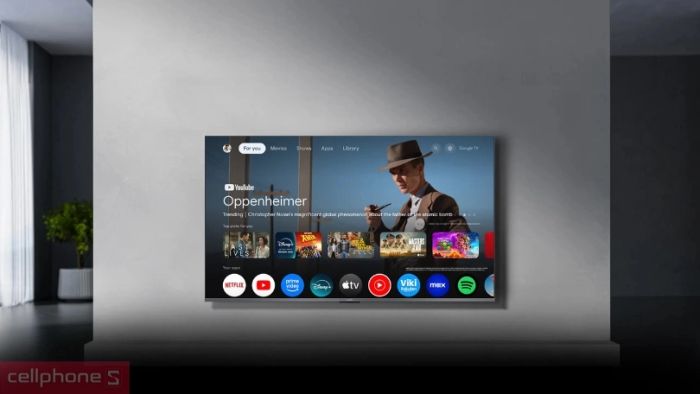 Ứng dụng phổ biến như Netflix, Prime Video, YouTube và tích hợp Google Assistant.