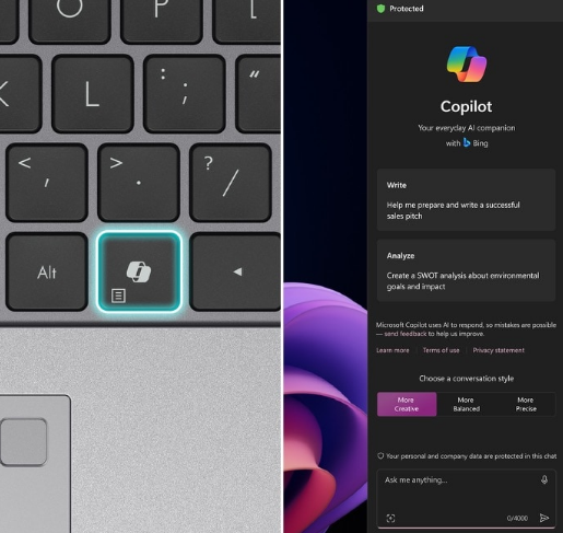Copilot trong Windows5 với khả năng bảo vệ dữ liệu thương mại chính là trợ lý AI đắc lực trong công việc của bạn. Bứt tốc hiệu suất và làm việc nhanh hơn, hiệu quả hơn, năng suất hơn với Copilot. Trải nghiệm người bạn đồng hành AI trong công việc hàng ngày ngay với phím Copilot chuyên dụng. Chỉ một cú nhấp sẽ đem lại tiềm năng vô tận.