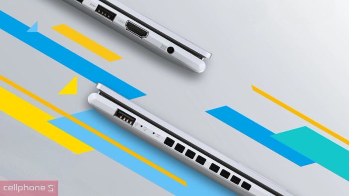 Laptop Vivobook 15 OLED được trang bị đầy đủ các cổng kết nối như USB 2.0, USB 3.2 Gen 1 và Type-C hỗ trợ sạc nhanh, mang lại sự tiện lợi trong quá trình sử dụng. Bên cạnh đó, máy còn có cổng HDMI 1.4, jack âm thanh 3.5mm và cổng DC-in, đảm bảo kết nối dễ dàng với các thiết bị ngoại vi.