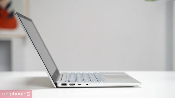 Về cổng kết nối, HP 14-EP0220TU B73VWPA trang bị khá đầy đủ các cổng giao tiếp hiện đại, nổi bật là 1 cổng USB Type-C 5Gbps và 2 cổng USB Type-A 5Gbps. Chưa hết, máy còn có 1 cổng HDMI hỗ trợ xuất hình ảnh lên màn hình ngoài, 1 cổng AC Smart Pin và 1 jack cắm tai nghe/mic combo.