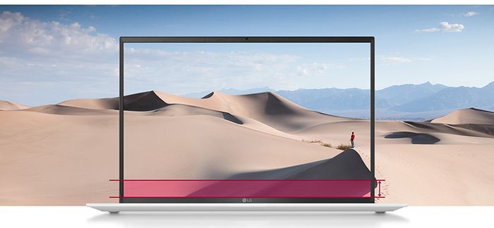 Laptop LG Gram 16ZD90P-G.AX54A5 sở hữu màn hình tràn viền 16 inch rộng lớn cho bạn cảm giác như đang được hòa mình vào thế giới bên trong khung hình. Độ phân giải WQXGA (2560 x 1600 Pixel) cho hình ảnh hiển thị sắc nét, sống động với độ chi tiết cao, chữ viết rõ ràng. Màn hình 16:10 cùng viền siêu mỏng 4 chiều cho bạn trải nghiệm thị giác vô cùng ấn tượng, sống động, chân thực. Tỉ lệ 16:10 cho hình ảnh hiển thị Full màn hình, diện tích màn hình tăng 11% so với tỷ lệ 16: 9, giúp bạn xem thêm được nhiều thông tin hơn trên một trang mà không cần phải sử dụng thao tác cuộn.
