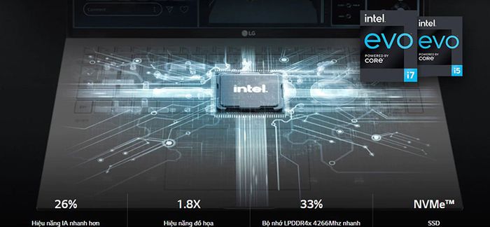 Laptop LG Gram đạt chứng chỉ nền tảng Intel Evo với bộ đôi xử lí Intel Core i5 Gen 11 và card đồ họa tích hợp Intel Iris Xe cho tốc độ xử lí nhanh, tối ưu hiệu quả làm việc, phát trực tuyến mượt mà. Card đồ họa Intel Iris Xe Graphics đời mới này mang đến hiệu suất đồ hoạ ấn tượng, nâng hiệu năng đồ họa lên 1.8X lần so với bản tiền nhiệm.