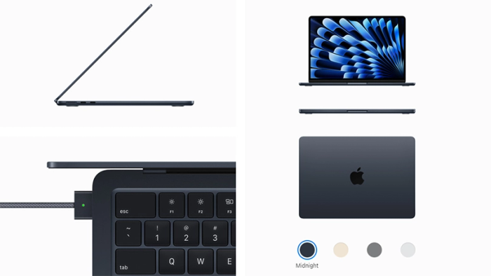 Thế hệ Mac Air 15 inch mới trong năm 2023 này của Apple sẽ có sự góp mặt của 4 phiên bản màu sắc đặc biệt là Silver, Starlight, Space Gray, Midnight. Đây đều là những tuỳ chọn màu sắc hết sức đều hết sức rực rỡ. Nó không chỉ tôn lên vẻ đẹp của chiếc laptop mà còn mang tới cho bạn cảm giác sang trọng, chuyên nghiệp mỗi khi sử dụng.