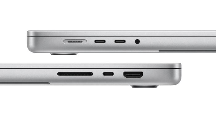 Ba cổng Thunderbolt 5 và khe cắm thẻ nhớ SDXC giúp mở rộng không gian làm việc dễ dàng.