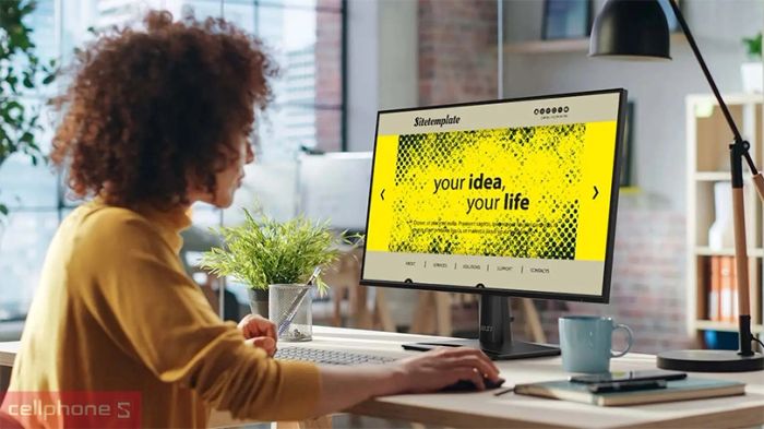 Độ phủ màu sRGB 99% và tấm nền IPS giúp hiển thị màu sắc chính xác, lý tưởng cho thiết kế đồ họa.