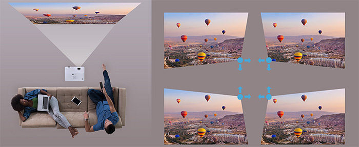 Chức năng Corner Keystone và zoom quang học 1.2X cho phép điều chỉnh hình ảnh dễ dàng và linh hoạt.