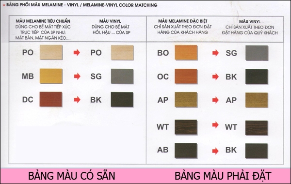 Có 3 màu có sẵn (PO, MB, DC), khách hàng có thể đặt màu khác trong bảng màu.