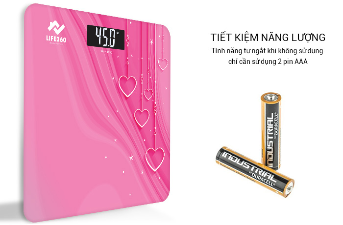 Mặt cân trang trí hoa văn dễ thương và màn hình LED hiển thị rõ ràng.