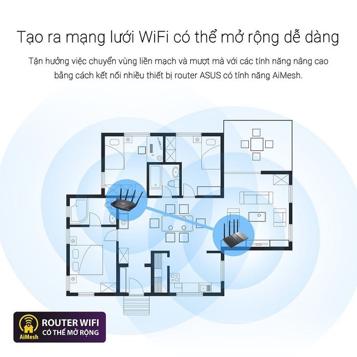 Tuy nhỏ bé, nhưng khả năng phủ sóng của ASUS RT-AX53U lại không hề khiêm tốn. Bạn chỉ cần lựa chọn vị trí lắp đặt phù hợp, thiết bị sẽ tự tin phủ sóng toàn bộ không gian sống của bạn. Đáng chú ý hơn, dù chỉ với kích thước nhỏ gọn, nhưng ASUS RT-AX53U lại hỗ trợ cả hai băng tần 2.4GHz và 5GHz với tổng băng thông lên tới 1800 Mbps. Điều này sẽ đảm bảo khả năng truyền dữ liệu nhanh chóng, ổn định cho tất cả các thiết bị trong hệ thống mạng của bạn.