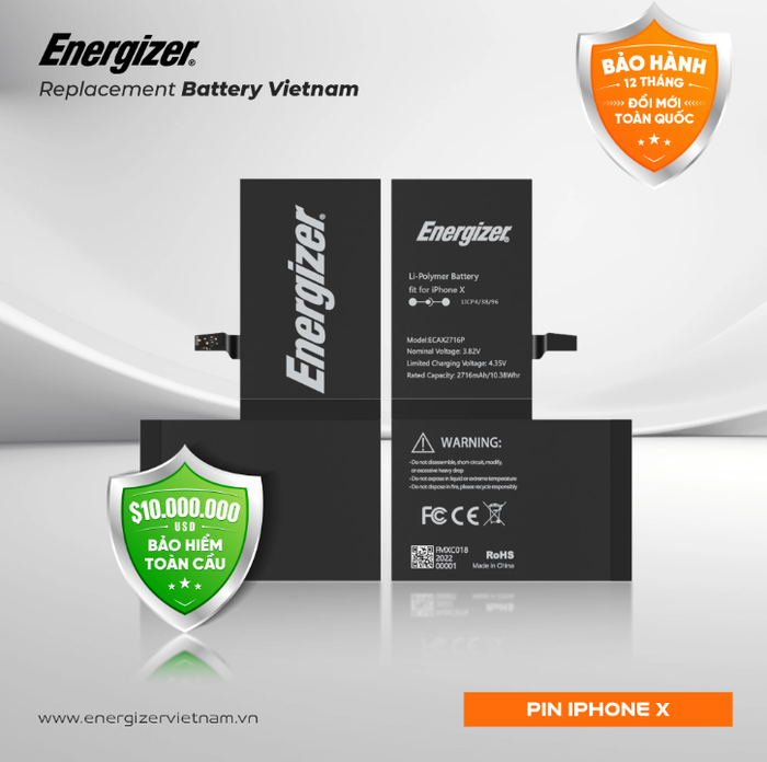 Pin Energizer ECAX2716P là giải pháp hoàn hảo giúp khôi phục hiệu suất cho chiếc iPhone X của bạn. Với công nghệ tiên tiến và chất lượng vượt trội, sản phẩm này đảm bảo mang lại trải nghiệm sử dụng tuyệt vời, kéo dài thời gian hoạt động cho thiết bị của bạn.