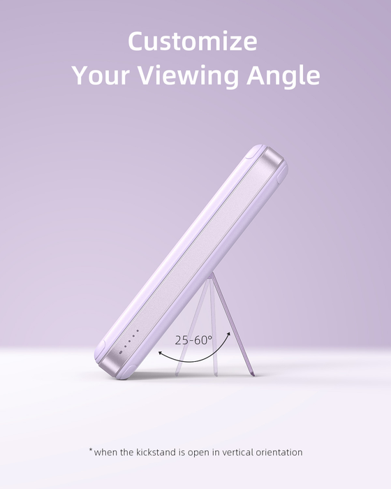 Sạc dự phòng sở hữu các đường bo cong mềm mại, với vẻ ngoài hình khối chắc chắn và gọn nhẹ, đem đến cảm giác vừa tay và thoải mái khi cầm. Nhà sản xuất cũng rất có mắt thẩm mỹ khi mang tới các tùy chọn màu pastel vô cùng xinh xắn từ Đen, Xanh dương và Tím thơ mộng, càng nổi lên phong cách trẻ trung, hiện đại của người dùng. Bên cạnh đó, sản phẩm này còn được tích hợp chân đế có khả năng mở rộng với góc nghiêng 25-60 độ. Bộ phận này hỗ trợ chống đỡ iPhone, mang đến sự tiện lợi và rảnh tay khi sử dụng, cho phép người dùng điều chỉnh những góc độ phù hợp và thoải mái nhất khi đang trong quá trình sạc.