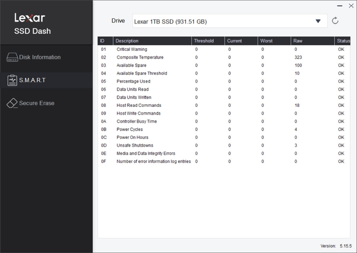 Với phần mềm quản lý SSD Dash được phát triển bởi Lexar, bạn hoàn toàn có thể chủ động quản lý chiếc ổ cứng của mình. Phần mềm này sẽ cung cấp cho bạn thông tin hiệu suất chiếc ổ cứng, tình trạng ổ đĩa, cập nhật firmware và đưa ra các cập nhật cần thiết giúp đảm bảo rằng chiếc ổ cứng của bạn luôn hoạt động tốt.