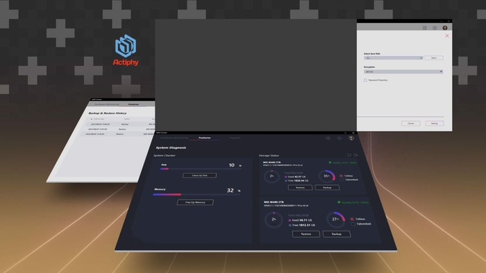 Ngoài ra, người dùng có thể dễ dàng theo dõi lịch sử sao lưu dữ liệu, tình trạng ổ cứng và nhiều thông tin khác thông qua phần mềm MSI Center.